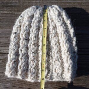 Alpaca Beanie Skully Hat Men Thick Chunky Hand Knit Wool Rib Biscotti White M-L