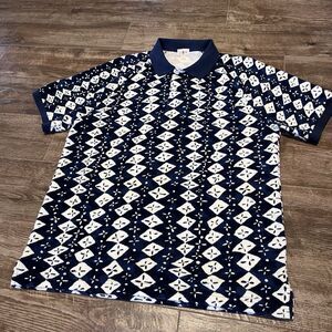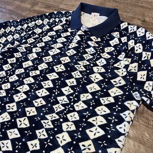 J Crew Shirt Mens L oarsman Textured Terry Cloth Toweling Polo AOP Geometric
