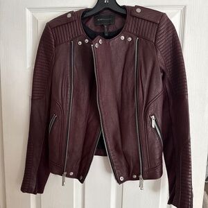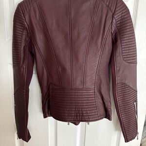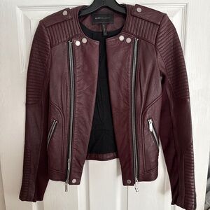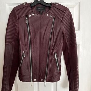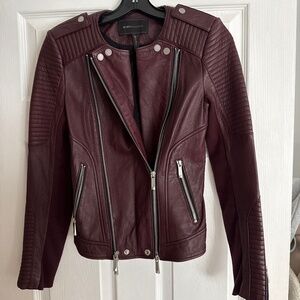 BCBG MAXAZRIA Burgundy Moto Zip Leather Jacket XXS $598