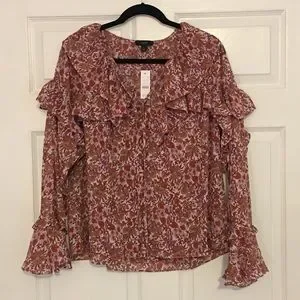J. Crew Ruffle Crinkle Chiffon Top - Large