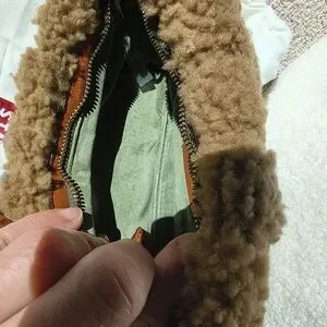 Note that this bag absolutely will pick up lint from anything it touches that's fuzzy. So if you wear it with say a cashmere sweater it will pick up some fuzz from that sweater. I have tried to de lint this to the best of my ability.