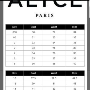New with tags Alyce Paris open-back dress. Perfect for Homecoming, Prom, or any special occasion. Refer to size chart for measurements.