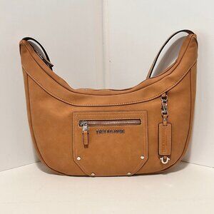 Stylish crossbody bag with front zipper pocket. Features True Religion logo. Perfect for everyday use. I have removed the tag since buying it but not the stickers on the zippers and have never used it. Nice, soft slouchy leather!