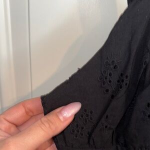 Stylish black cropped top featuring eyelet details. Perfect for casual outings.