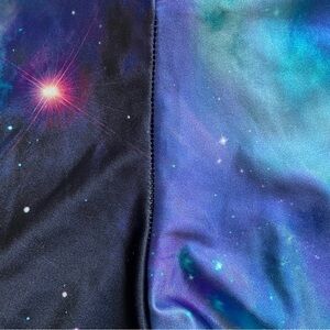 Colorful Galaxy Teal leggings from BlackMilk. Size M (waistband 11.5”, inseam 27”) and stretchy. For reference, my waist is 28” and hips are 38” and I found them to be nicely fitted. Polyester/elastane blend and hand wash only. In excellent condition with a tiny bit of seam stretch (see photos). Comes from a smoke free, cat friendly, low scent home. I only ship on Mondays and Thursdays in the afternoon so please keep that in mind when ordering. No offers, please. The price listed is the lowest that I’m willing to go.