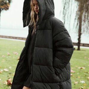 ZARA LONG ANORAK WATER AND WIND PROTECTION PUFFER Black NWT