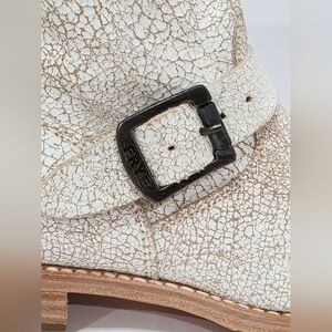 Frye Logo on Outter Bottom, Distressed White, Buckle on Top and Side