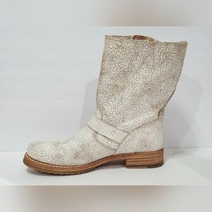 Frye VERONICA 76516 White Distressed Leather Boot Ride Buckle Pull-On 10 B New