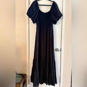 Size 1X/2X NWOT Fashion Brand Company Fashion Brand Company Picnic Gown in Soft Linen Black. Looks like black swiss dots.
