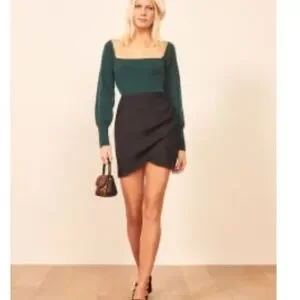 Chic black mini skirt by Reformation. Perfect for stylish outings. Worn a few times, still in good condition.