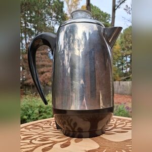Brew your perfect cup with this sleek stainless steel coffee percolator. Featuring a sturdy black handle for easy pouring, this percolator is a stylish addition to any kitchen. Vintage Faberware model 138 8 cup super fast perculator coffee maker. All original parts. Works great and makes excellent coffee fast.