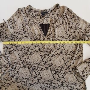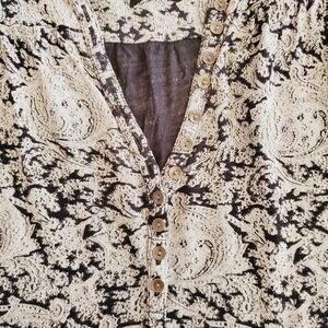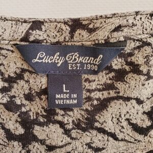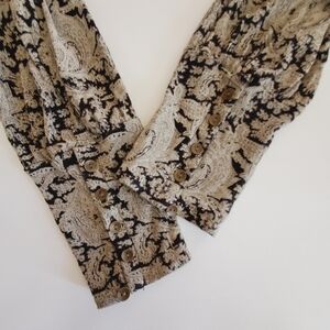 1459 * Lucky Brand Paisley Print Long Sleeve Blouse Black Tan Brown Size L