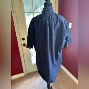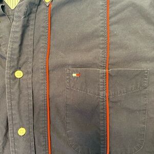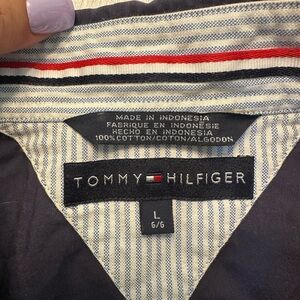 Tommy Hilfiger Men’s Shirt Large Navy Blue Button-Down Red Stripe 100% Cotton