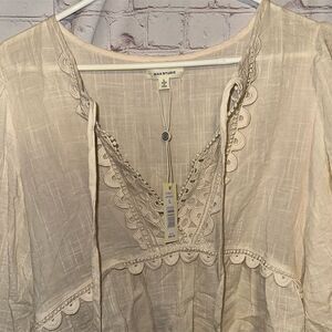 NWT Max Studio Women's White Boho Blouse Size L 3/4 Sleeve Scoop Neck Bin K