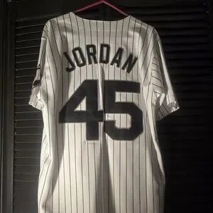 Stylish kids baseball jersey featuring classic black and white pinstripes. Perfect for young sports enthusiasts.