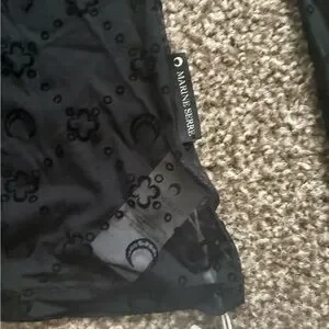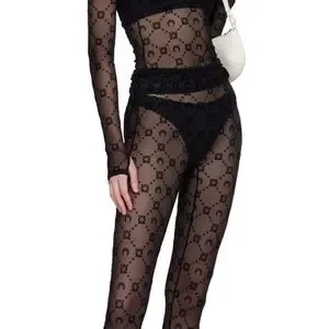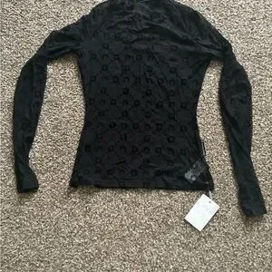 Elegant black sheer top and tights with intricate texture. Ideal for chic layering.