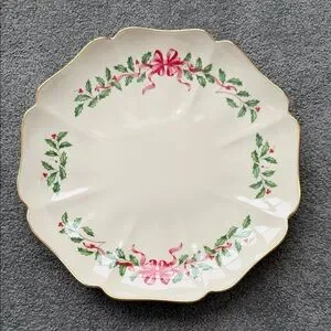 Classic vintage Lenox serving dish. Pristine condition. Stored properly for years. Made in USA. Beautiful ribbon and classic holly design. Elevates any holiday table.