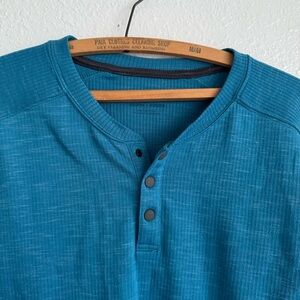 prAna - Ronnie Henley Shirt 1/4 Button Down Space Dyed Turquoise Size Large