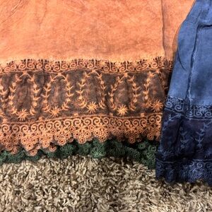 Bundle of four Agnes & Dora woven eyelet tank tops. 3 are in good used condition and one is new with tag. It is not a stretchy material. The tank tops are meant to look dyed and distressed. The white one is more silky material than the others. The front piece is a little see-through. I tend to wear these with a spaghetti strap tank top underneath whether it is the same/similar color or just a basic white. They are super cute under jean jackets or cardigans. Selling as a bundle will not separate. Pet friendly small free home.