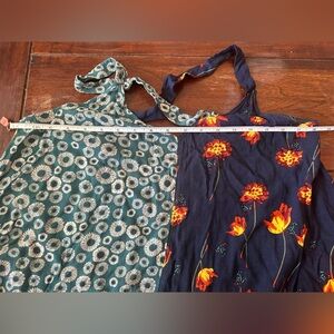 Beautiful and unique Intimately by Free People sleeveless dress featuring a playful mixed floral print design. One side showcases a teal floral pattern, while the other side has a navy floral print with pops of yellow and orange. Finished with a flirty ruffle hem for that effortless boho-chic vibe Free People is known for.
