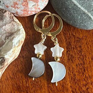 Moon and Star Earrings, Mother of Pearl, Celestial
