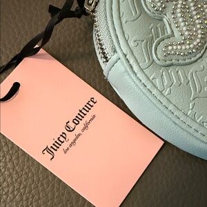 Chic heart-shaped clutch with embossed design. Features rhinestone Juicy logo. Includes a stylish chain strap.