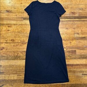 Navy blue cotton short sleeve dress from Boden- size 6 tall for extra length. Knee or midi length. Worn once- excellent condition. Crew neck and subtle pleat at waist with light stretch and pockets!