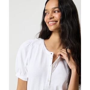 NWT J.Crew Smocked Henley Knit Top White Size L