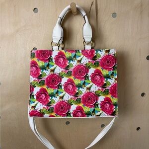Juicy Couture Billboard Faux Leather Tote Multi-Rose Print With Crossbody Strap