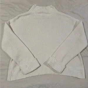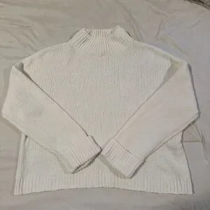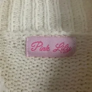 Cozy and classic cream knit sweater from Pink Lily. Features a soft ribbed texture, mock neck, and relaxed fit for easy styling. Perfect for layering or pairing with jeans for a chic everyday look. Excellent pre-owned condition — no stains or holes.