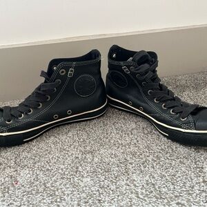 Lightly worn black leather high top Converse. Size 6.5 men’s, 8.5 women’s.