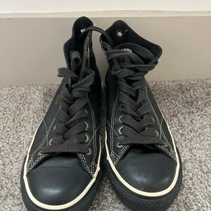 Black leather high top converse, size 6.5 mens, 8.5 women’s
