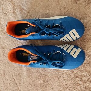 Brand New Youths Puma Evospeed 4 Soccer Cleats, US Size 7 / EUR 39. Blue, Orange and White.