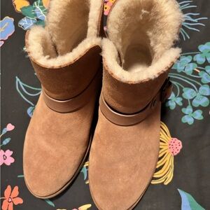 Step into comfort with these stylish tan suede ankle boots. Perfect for any casual outing, these boots offer both warmth and style.