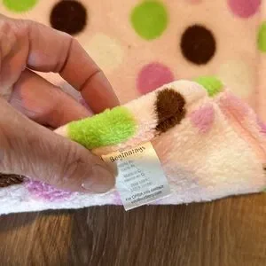 Little Beginnings Pink Polka Dot Baby Blanket Brown Green Soft Security