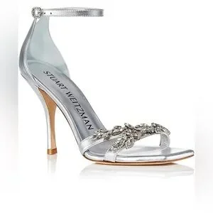Stuart Weitzman Women's Nudist Vow Crystal Heel Sandals Size