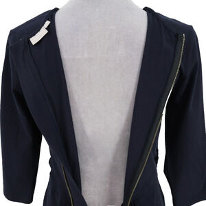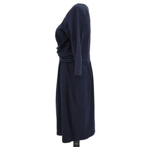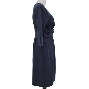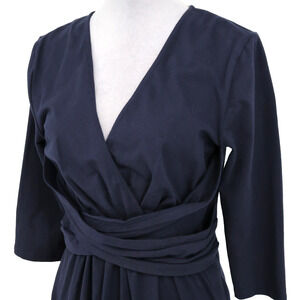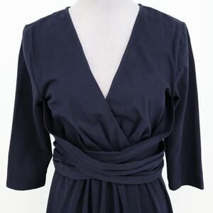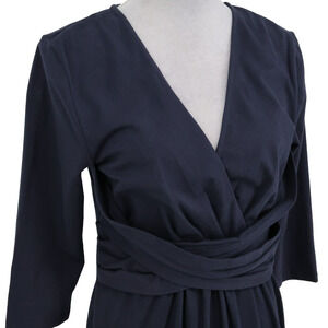 eShakti Dress Womens 12 Navy Blue Cotton Stretch Knit Zip Faux Wrap V Neck