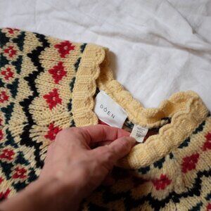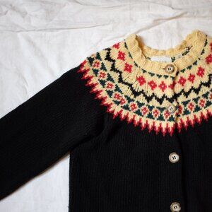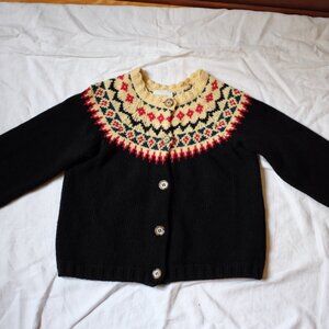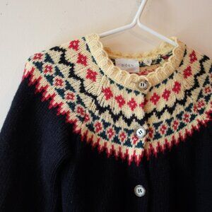Beautiful, warm wool girl’s cardigan from Dôen. Rich colours. Heritage piece. Perfect for the holidays. Condition unchanged since photos. Unworn by this buyer. Hoped to fit into it as a size 4 adult, but just too small :(