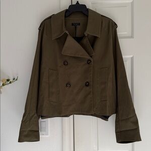 NWT rag & bone Betty Cropped Trench Coat Army Green XL