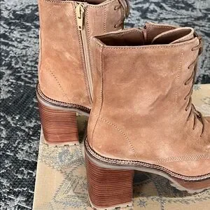 Stylish tan leather boots with lace-up design. Perfect for versatile wear. Never worn