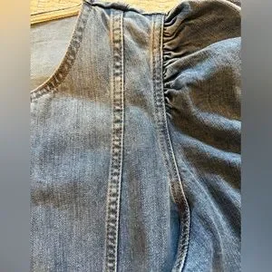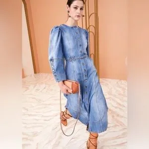 Chic denim midi dress by Ulla Johnson. Features button-down front and puff sleeves. Perfect for casual outings.