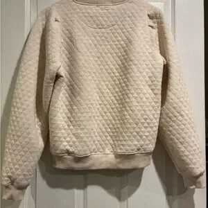 Soft off-white top with ribbed collar. Ideal for everyday comfort. Some pilling.