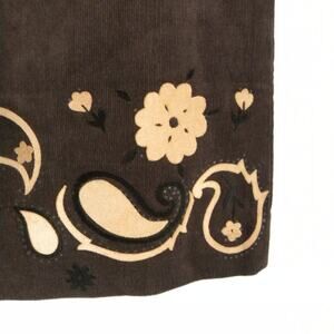 Grace Elements Brown Corduroy Pencil Skirt Beige Floral Accents Women size 10