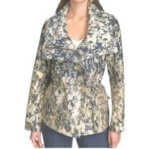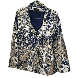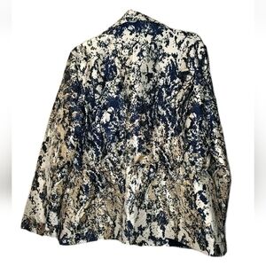 Donna Karan Metallic Jacqrard Moto Zip Jacket Coat Sz XL Blue Gold ASOTV Pamela