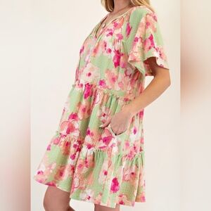 Easel Floral Knit Popcorn Tiered Dress #496-501