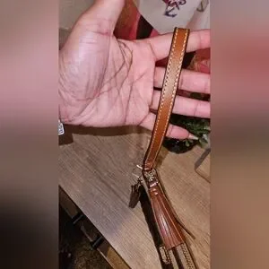 Dooney & Bourke Ostrich Dark Brown Wristlet with Gold Accents
