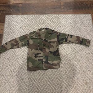 Vintage Woodland Camo BDU Jacket with Velcro Patch Panels – Fits Women’s M