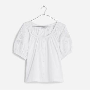 Madewell Floral Embroidered Puff Sleeve Top – Size M, NWT, One Broken Button