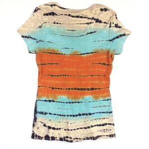 Tryst Tie Dye Stripe Top Turquoise Beige Orange
