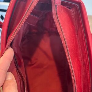 Stylish red tote by Celine. Features gold hardware. Ideal for daily use and for your holiday festivities!